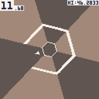 This is a demake of Super Hexagon. Controls are just left and right - avoid the walls for as long as possible! After game over, the game will reset after a short pause. High scores are saved.